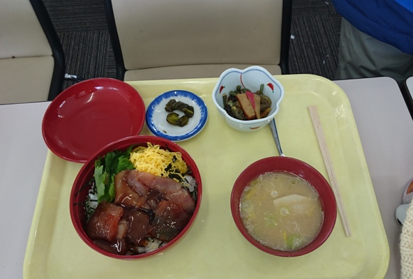 嫁さんとユンはマグロ丼。食事中にリフトが完全に止まってしまい撤収。 結局、はるばるお昼ご飯食べに来ただけ。。。 |