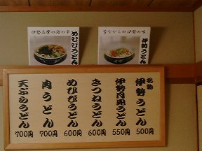 伊勢のめひびうどんを食べました。 あっさりとしていて、おいしいのですが、 見えるところにうどんのパックの箱が 積んであり少しショックでした。 |