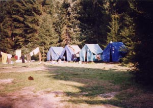 ワークキャンプ2週目はテント生活。ちなみに1週目は現地の小学校で寝泊りしてた。 食事は1週目は小学校の食堂で作ってもらったものを、2週目はキャンプなのでメンバーで 自炊したものを食べてました。最初に面食らったのはミネラルウォーターが炭酸入りで 美味しくないこと。もうだいぶ記憶のかなたになってしまったがスロバキア料理は まずまずだったような。見たことない変な味付けのものもあるにはあったが。 ヨーロッパ人はパンばっかり食べてるのかと思っていたが、ご飯も出てきたことが新鮮だった。 |