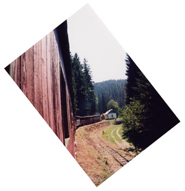 これが一部整備もしたレールの上を実際に走るトロッコ列車。 速度が非常にゆっくり。トロッコ列車なので窓も無く、朝は風が冷たく寒かった。 昔は林業で使われていたもので、今は観光用。日本のトロッコ列車と同じような運命。 |
