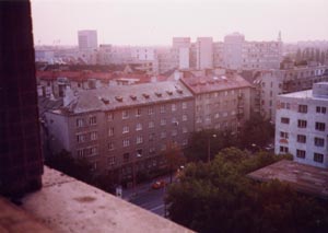 仙台空港を出発してから30時間以上、ようやく着いたスロバキアの首都Bratislava。 泊まったホテル(Youth hostel Bamolak)の部屋から。大学の寮を夏休み中ホテルにしてると 書いてあったように思う。シャワーの出が悪くかつお湯というには温度が低かった。 一泊1500円ぐらいだったと思う。 |