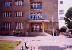 Banska Bysricaの郵便局。でかい。イギリスから来ていたトムが 自分の国に電話していたっけ。 |
