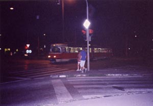 Blatislavaに戻った夜。路面電車が走って行く。 |