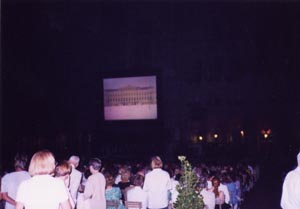 野外無料シアター。広場では出店が多くでていて、夏祭りという風情。 でも夏休み中やっているところがすごい。ピザとビールを手に毎晩見てた。 カルメンとかやっていたのだが、言葉が分からないので、ほんとに見てるだけだった。 |