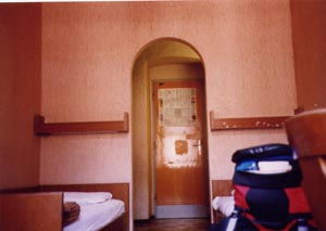 ウィーンで泊まっていたホテルの部屋。初日は相部屋だったけど、 2日目からは空いたのかひとりで使ってた。一泊2000円ぐらいだったと思う。 |