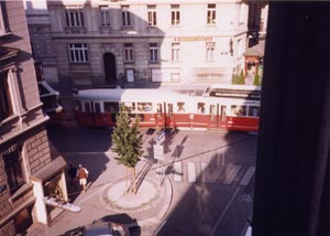 ホテルの窓から2。ウィーンも路面電車が走っている。乗ってたのはもっぱら地下鉄だったけど。 載り放題切符があって、路線図も分かりやすかったので。 |