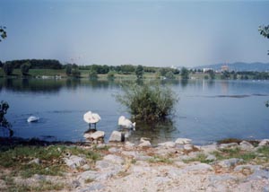 こちらもドナウ川の河畔。ここは遊覧船があることをとは違い、市街から外れたところ。 いい天気で、河畔の木陰で昼寝してた。このちかくの店で定食を食べた。 ドイツ語で定食はMENU。メニューをくれっていうとメニュー表ではなく、日替わり定食が 出てくるはず。 |