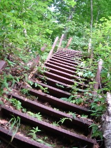 かなり急な階段。この後崩壊しているところもあって、慎重に歩く。 |