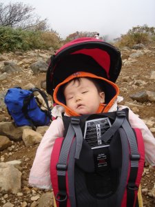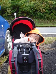 ユン。寝てます。揺れが気持ち良いのかね。 |