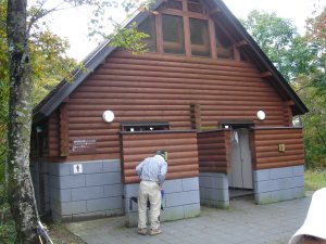 登山口にあるトイレ。水洗でキレイ。 |