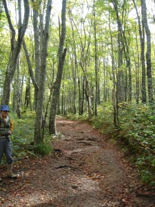 中の湯まではこんな感じの林の中の歩きやすい道を行く。 |