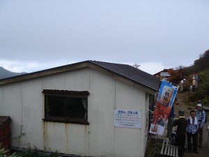 中の湯。宿泊の出来る温泉山小屋だったらしいが、廃墟に見えた。どうも廃業したらしい。 硫黄の臭いはかなりしてました。 |