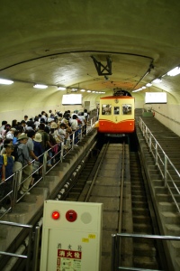 黒部ダムと黒部湖を結ぶケーブルカー。こちらもトンネルの中を走る。