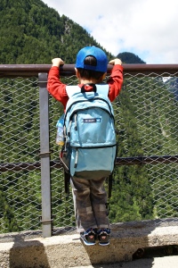体に不釣り合いな大きなザックを背負って頑張ってます。 |