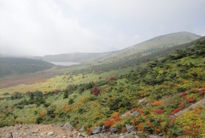 酸ヶ平避難小屋からののぼりから望む鎌沼方面。