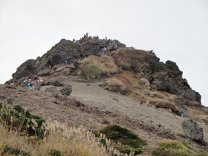 山行記へ 山の写真へ 山ある記Topへ ルート 第1日 奥岳〜あだたらエクスプレス〜山頂駅〜仙女平分岐〜安達太良山頂(乳首山)〜仙女平分岐〜山頂駅 〜あだたらエクスプレス〜奥岳 備考 標高差:350m コースタイム:2.5時間 天気の良かった土曜日、“明日久し振りに山歩きに行こうか?”“そうしよっか。どこに?” “西吾妻山にしようかなあ。” 第1日 今年はまだ山歩いてなかったなと運動不足でなまった体を動かすために久し振りの山歩きを計画。 行ったことのない西吾妻山にしようかと思っていたのだが、天気予報が外れ空模様がいま一つ。 結局近場にしておこうと10年振りの安達太良山登山へ出発。 ゴンドラが8:30から営業開始なので8時半過ぎにゴンドラ乗り場に行くが、すでに乗り場には行列が。 山の朝は早いですねえ。早速切符を買い、ゴンドラで1350m地点まで移動。9時10分頃には山歩き開始。 歩き始めてから仙女平までは木道などで整備された道が大部分で子供たちも快調に進む。 子供たちはすれ違ったり、追い抜かれたりしていく方たちに頑張ってねーと励まされてやる気も満々。 仙女平で休憩してから山歩きらしい土やがれきの道を歩く。この辺からは見晴らしもよく、大人は 景色を楽しみながら歩ける道。子供たちは高さが足りずあまり見えてなかったみたいだけど。 歩き始めて1時間半ほどして疲れの見えてきたリョンであったがなんとか自力で山頂に到着。 コースタイムが1.5時間弱だったので3時間を覚悟していたが2時間弱で到着、去年はコースタイムの倍 かかって一切経山に登ったことを考えるとなかなかいいペース。 一応山頂の岩場に登ってまわりの山々を眺める。曇り空ではあったが眺望は良く歩いた甲斐のある景色。 ただ風が当たって肌寒いので早々に退散して毎度おなじみのカップラタイムへ。日差しがなく寒い時に 食べるラーメン、相変わらずうまいですなあ。一服した後下山開始、帰りもなかなか快調に進み、 結局13時半頃には山頂駅に到着。結局コースタイム2.5hに対して4.5hで山歩き終了。子供たちと歩くには ちょうどよい距離と難易度だったなあ。当初の予想以上に頑張ってくれたし、一年の成長を感じた。 この調子なら来年はもっといろいろ行けるか?・・・と、去年も思って歩かないまま今年が終わってしまった ので、来年こそは楽ちんオートキャンプばかりでなく体を動かすようにせんとね。 2010.11.7記 安達太良山関係リンク あだたら高原 ・・・あだたら高原富士急ホテルのHP。あだたら高原のゴンドラの情報がある。 |