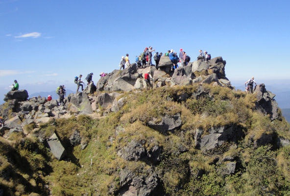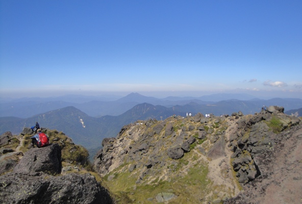 | 奥白根山山頂。山頂での記念撮影の順番待ちで大混雑。 |