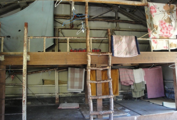 | 避難小屋の中。毛布が置かれていた。“ネズミが出ます”と柱に書いてあった。。 |
