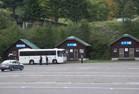 | 駐車場にはトイレと更衣室。更衣室はスキー用なんだろうね。 |