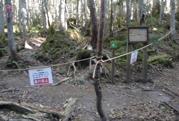 | 七色平から弥陀ヶ池に抜ける道が台風の影響で通行止めとのこと。座禅山の火口ルートへ迂回。 |