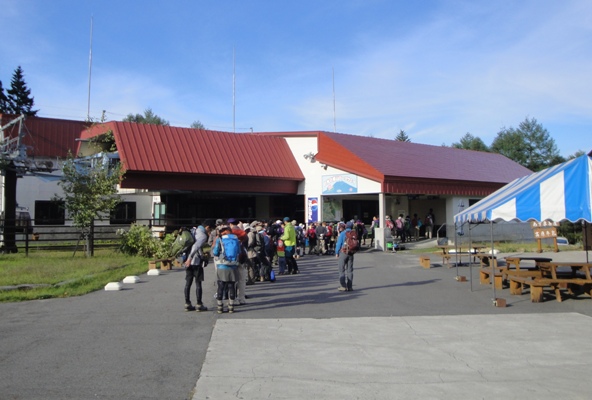 | 7:30にゴンドラが動き出す前に多数の登山者が列をなしていた。さすが人気の山の人気ルート。 |