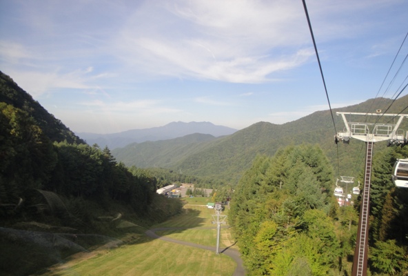 | 武尊山を見ながらゴンドラに乗って1400→2000mまでゲレンデを一気に上がって標高を稼ぐ。楽ちん(笑)。 |