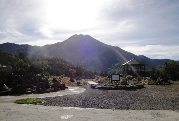 | ロープウェイの駐車場で車中泊。武尊山が目の前に見える。 |