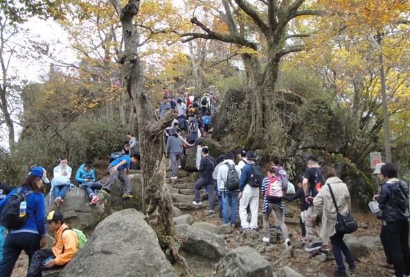 | 女体山山頂への道も大渋滞。 |