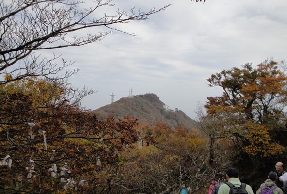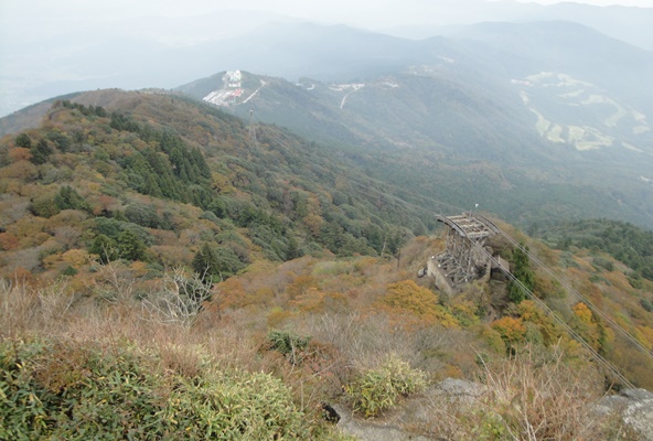 | 中腹は紅葉していた。つつじが丘のロープウェイ駅が見える。 |