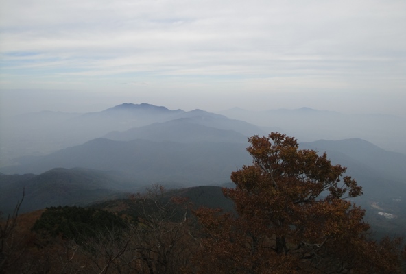 | 筑波連山方面。雲がかかって幻想的な雰囲気。 1000mもない山だけど周りに山がないので展望は良かった。 |