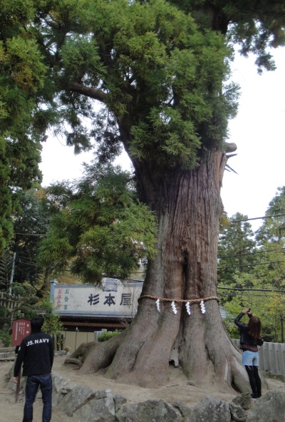 | 筑波山神社の大杉。樹齢約800年とか。無事に次男のトイレも間に合い筑波山歩き終了。 大人気の山で車も人も渋滞していたがケーブルカーで帳尻合わせて何とか予定時間に下山した感じ。 |
