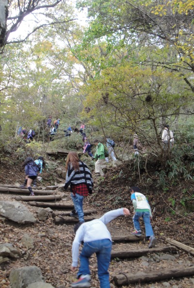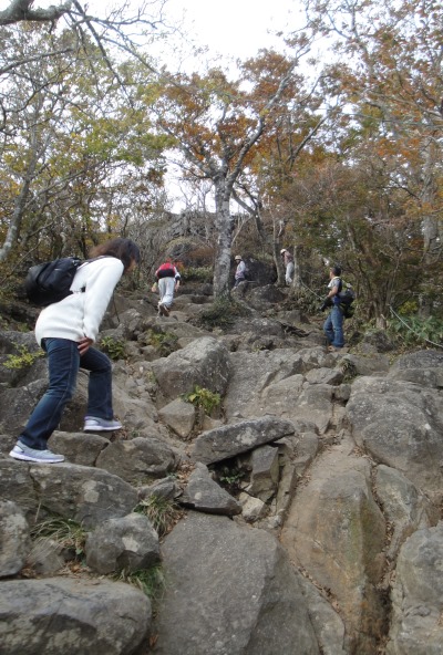 | 御幸ヶ原から男体山へは若干岩場の道もあり。子供たちはアスレチック気分で楽しかったよう。 |