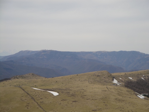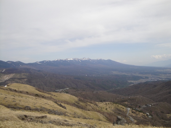 | 先ほど歩いた美ヶ原。 横に長いなだらかな高原というのがよく分かる。 |