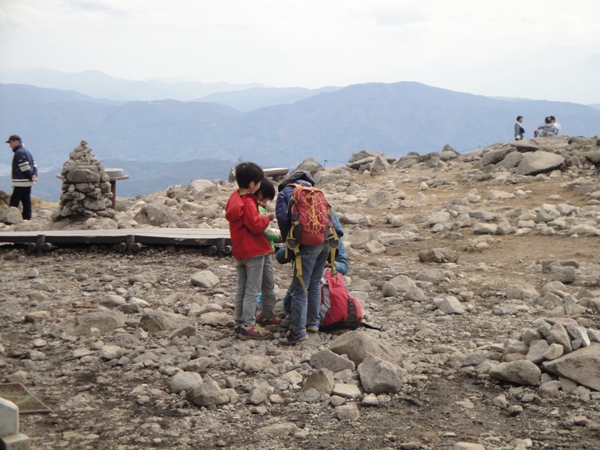 | おやつに群がる子供たち(笑)。 楽とはいえ2山で13qの道のり、頑張ってます。 |