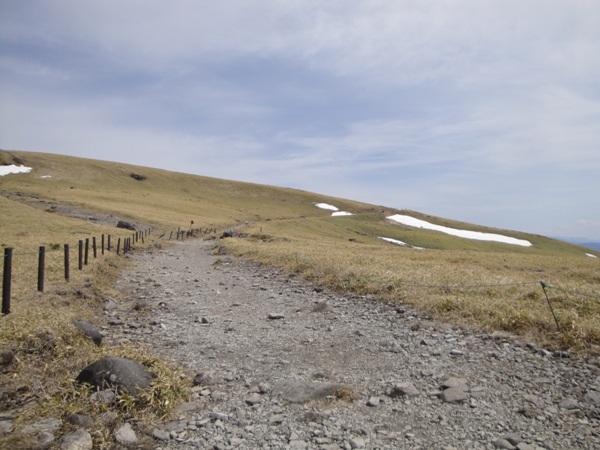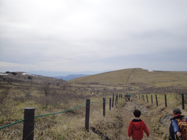 | 車山湿原に向けて歩く。 花のシーズンはまだ先、湿原というより草原といった感じに見えた。 |