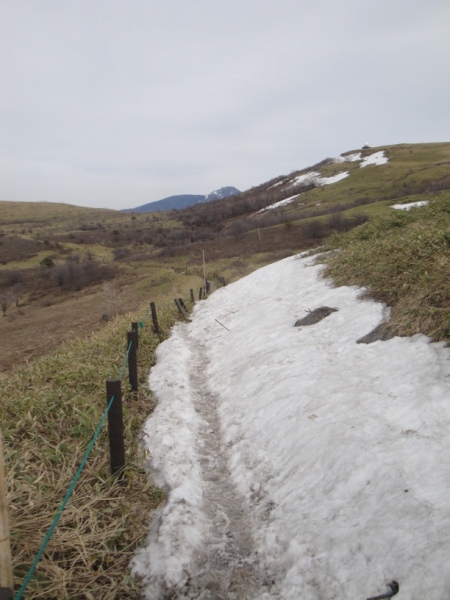 | 車山肩の手前で残雪再び。 こちらもちょっとだけ。 |