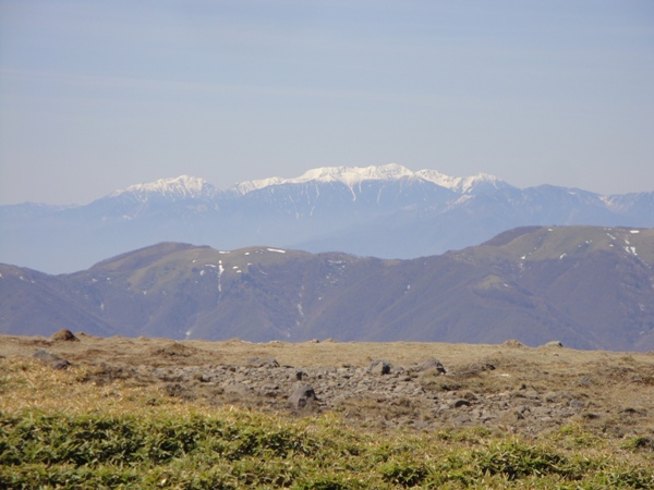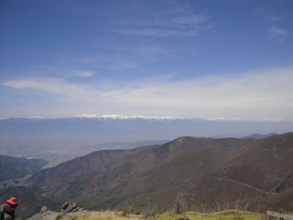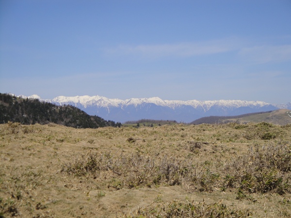 | 右側には北アルプス。 穂高から白馬まで長ーい山脈が一望。 |