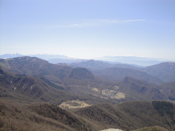 | 八ヶ岳〜南アルプス方面。 日本の3000m級の山々がほとんど見えてるんでないかな。 |