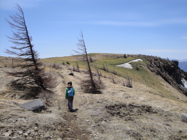 | 次男坊のトイレという声により出発。 先頭に立って歩く。 |