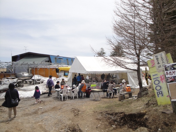| 美ヶ原高原ホテル山本小屋。キノコ汁屋が賑わっていた。 この後駐車場のある山本小屋ふる里館に戻って次男坊は無事にトイレへ。 |