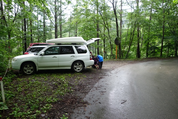天気が悪いせいか9時前到着でも比較的登山口に近いところに駐車できた。