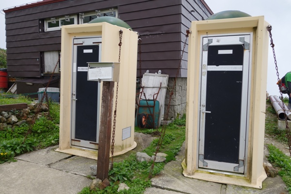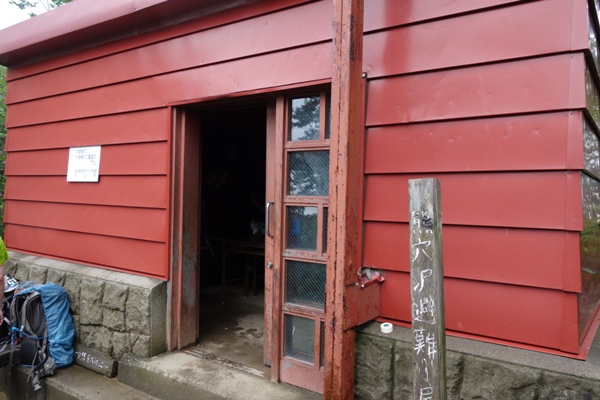 肩の小屋まで戻り次男坊はトイレへ。 1回100円。 小屋に泊まった時は天候悪くても外に出ないといけないね。 |