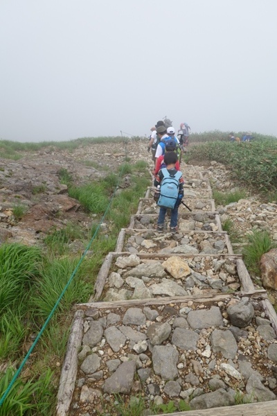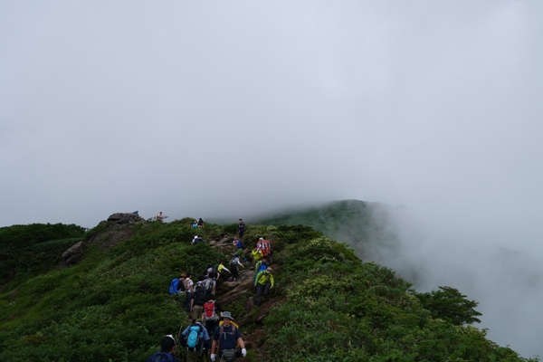 展望は今一つでも登山者はいっぱい。 さすが人気の山。 |