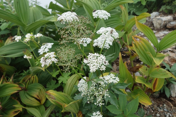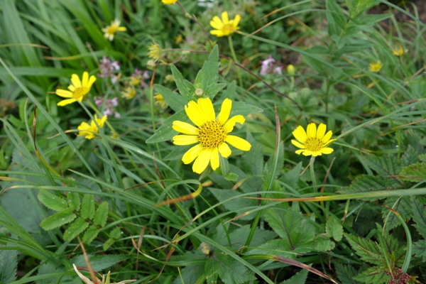 天神平到着。 ゲレンデにも花が咲いていた。 |
