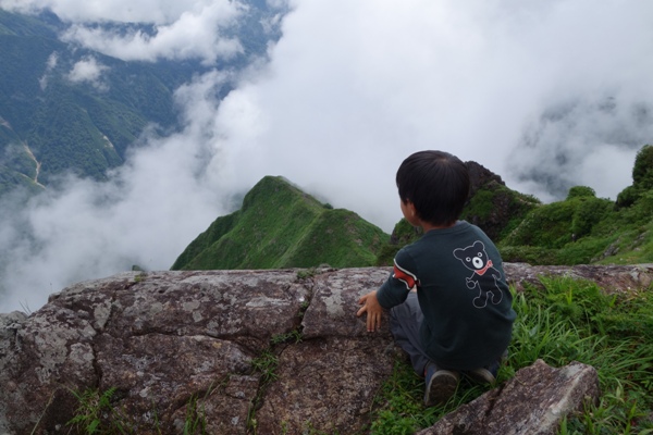 絶景に見入る次男坊。 前日は撤退で大泣き、今日は山頂にたどり着けてよかったね。 |