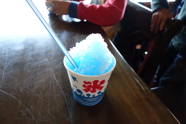 天神平のレストハウスで子供たちはかき氷を注文。 |