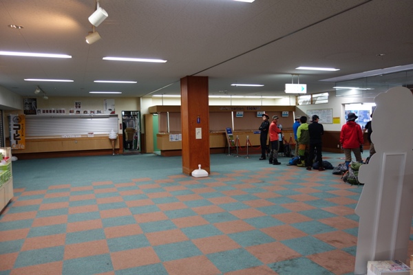 7時の運行開始前からロープウェイ乗り場には行列ができていた。 我が家の前にも20人くらいいたかな? ロープウェイ料金に加えて駐車料金も必要。 |