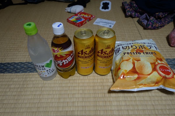 宿で結婚記念日の宴会。山小屋でビールが良かったが致し方なし。 |