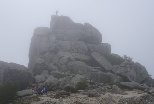 山行記へ 山の写真へ 山ある記Topへ ルート 第1日 金峰山荘〜川端下林道終点〜金峰山小屋〜金峰山山頂〜五丈岩〜金峰山小屋〜 川端下林道終点〜金峰山荘 備考 標高差:1000m コースタイム:6時間 “夏休みどこ行くの?”“北アルプスがいいなー。白馬か常念岳か。”“歩けるかなー。”“きついだろうねー。” ・・・“台風来てるけど大丈夫?”“大丈夫じゃないね、、、山梨に行こうか。”“めげないねー。” 第1日 夏休みの遠征計画として北アルプスデビューを妄想していたが台風により計画中止。全国的に天気が悪そうなので どこに向かうか悩んだ末、台風の影響が比較的早くなくなりそうな金峰山を目指して山梨へ。台風が日本海へ抜けた 朝、5時起きで準備をし6時にキャンプ場を出発、7時頃に金峰山荘到着。ちなみに大弛峠への林道は台風の影響で 全面通行止めの表示がされていた。そもそもみずがきにいたので瑞牆山荘からのルートもあったのだが、 ちょっと距離が長くなるのと下山時のお風呂を求めて廻り目平まで移動した。長野側から登ったので、 今回は“きんぽうさん”だね。 さて、入場ゲートをくぐって駐車場に着くが小雨が降っており雨具を着こむ。トイレをすませて歩き始める頃には 雨は上がったが、曇天のもと林道歩き。林道で早速ブヨがいてリョンのグダグダが始まりかけたが新登場の 防虫ネットを被せ、ブヨ対策することで何とか機嫌を直して歩く。中ノ沢の出合からは樹林帯の中の本格的な 登山道となり標高を稼ぐ。シャクナゲの花が落ちていて台風で全部落ちてしまったよう。ガスの中で景色もなく、 単調な山歩きを続けて3時間半ほどかけて金峰山小屋に到着。小屋から上は森林限界を超えて見晴らしがいいはずだが 真っ白。。 ちょっと休憩して山頂を目指す。出だしで千代の吹上方向へ間違いかけて戻り、岩の道を登る。ガスで真っ白で どこまで登るのか良く分からないまま進んでいると突然山頂の標識が現れた。風が強かったので写真を撮って そそくさと五丈岩の影へ撤退し昼食タイム。カップラに飽きてきているため、子供たちはおにぎりとパン。 大人はカップラも食べたが、なんかいい山頂飯ないかなー。昼食を食べた後もしばらく山頂で晴れ間を期待して 五丈石で遊んだりしていたがなかなか晴れず、あきらめかけたところで長野、奥秩父側の雲が切れて山並みが顔を 出してくれた。1時間半近く山頂で過ごし、13時過ぎに下山開始。金峰山小屋までの道は奥秩父をはじめとする 山並みを見ながらの気持ちの良い山歩きを楽しめた。子供達も久し振りのパノラマ風景を満喫、やっぱり山は 晴れないとね。 金峰山小屋に降りるとなぜかマウンテンバイク。なんでも担いで上がってきたとか。どうやって降りるのか 全くわからんがすごい人もいるもんです。子供たちは金峰山小屋で山バッチを購入。金峰山小屋はこじんまりした 感じで、お父さんの手伝いに来たという子供達にコーラを勧められた。金峰山小屋からは再び樹林の中の道を ひたすら下る。金峰山荘の駐車場もガラガラだったが登山道でもほとんど人とすれ違わず、山頂以外では 10人も会わなかった。山頂ですら10人ちょっとしか会わず、静かな百名山歩きだった。 廻り目平からの登山道はほとんど樹林帯や林道を歩く道で高山植物もほとんど見かけず、最後の林道が長かった。 16時前にようやく下山し金峰山荘へ。石鹸・シャンプーは持参必要だがきれいなお風呂に入り疲れをいやす。 我が家にとってはこれまでで一番の長丁場、道は歩きやすかったけどちょっとは鍛えられたかな。 富士山が見れなかったのだけは心残り。 2014.8.14記 山ある記前後のキャンプ 2014年8月9-12日 みずがき山自然公園 |