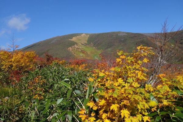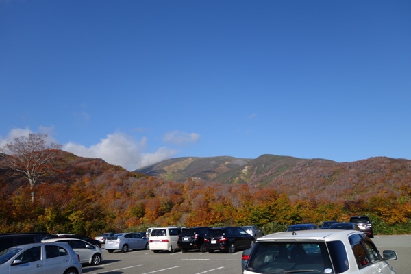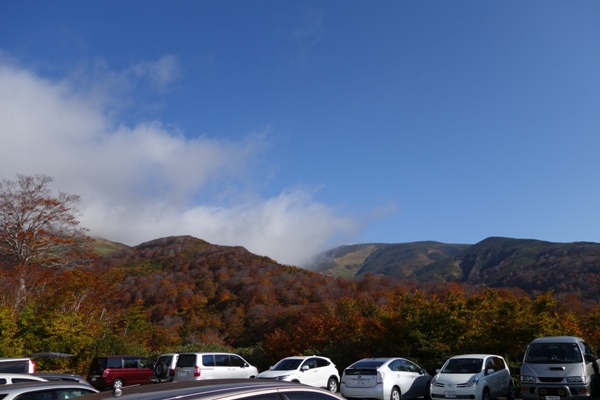 8時20分頃、姥沢駐車場到着。月山がきれいな青空の下に見えていた。 |